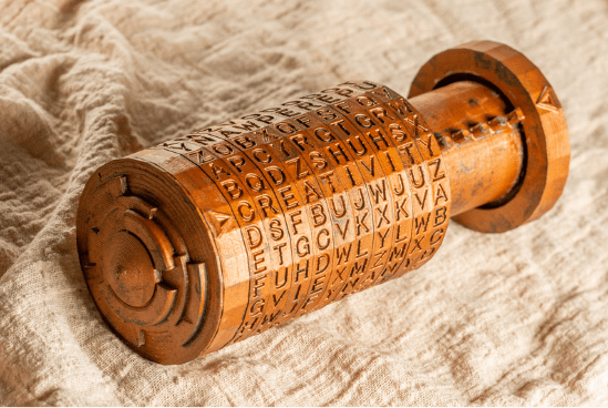 A cryptex is a cylindrical, lock device that typically consists of a series of rotating discs with letters, numbers, or symbols inscribed on them.