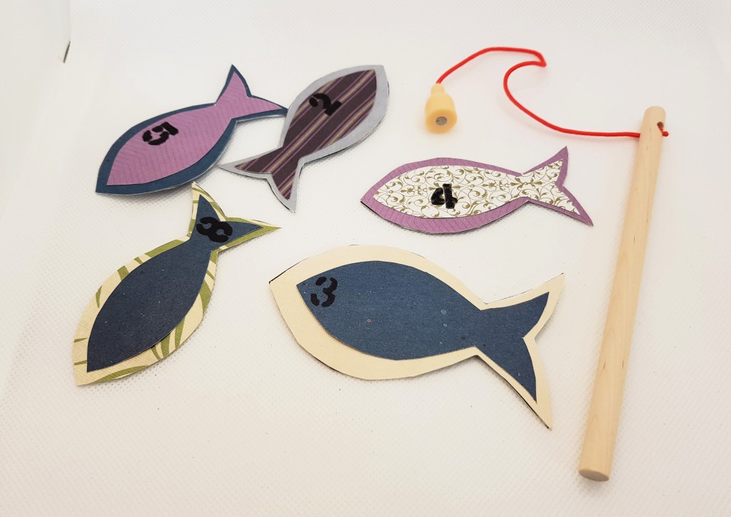Metallic fish must be caught with a magnetic rod. The numbers, symbols or letters on the fish provide a code.
