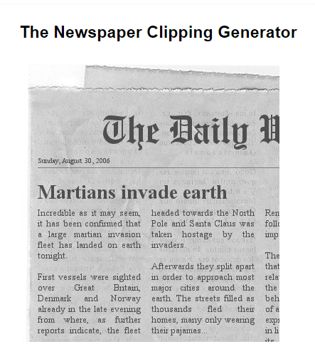 Make a newspaper clipping with your own headline and story and download it as image file.