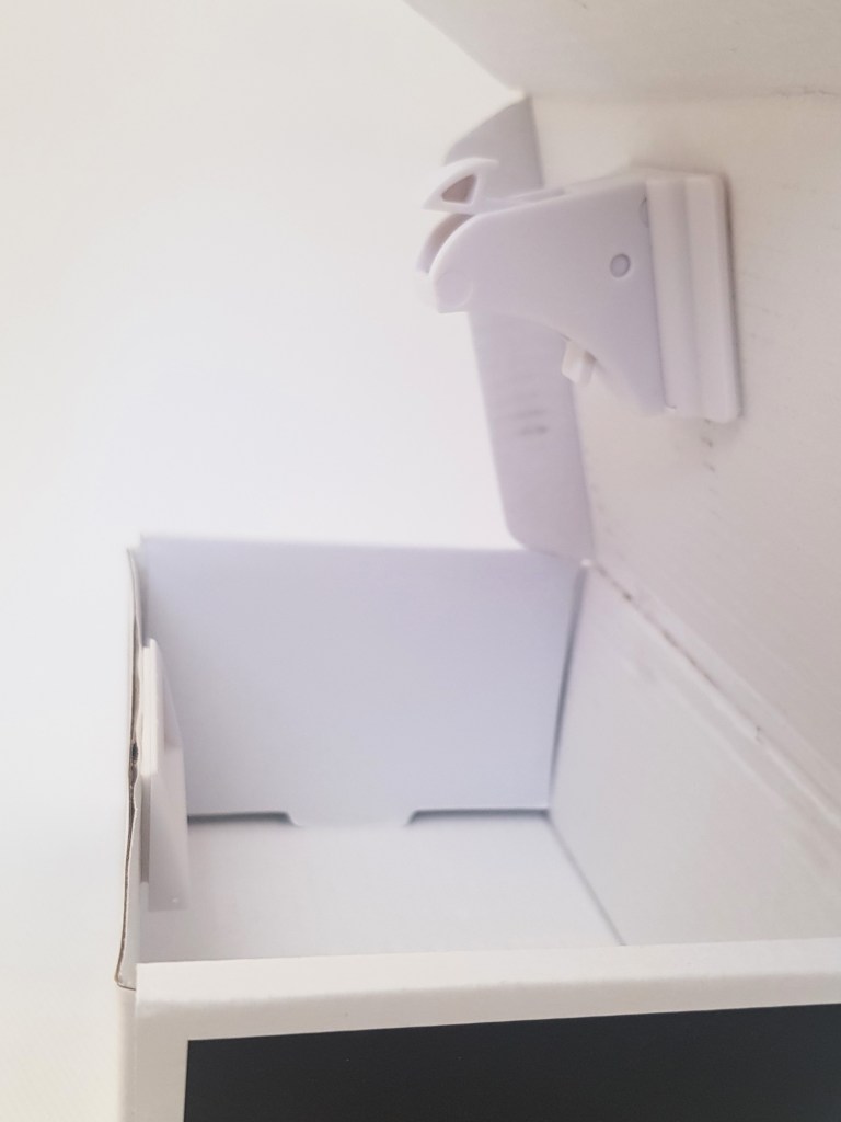 In this tutorial, the catcher is at the front side of my cardboard box and the lock is on top so the lock mechanism and thus the key can go on top of the box. I advise to position the catcher and the lock where you want them before you commit to gluing them.
