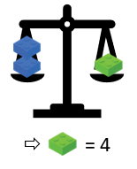 By weighing, the players can find out that 2 blue cubes are equal to one green cube, so green must weigh 4.