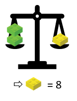 After that, players can find out that two green cubes are equal to one yellow cube, so yellow must weigh eight.