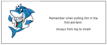 - Optionally, you can use another container (for example: the first aid tank) and mark it with instructions for the “caught” fish (for example: from big fish to small fish).